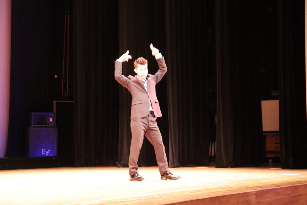 エントリーナンバー⑧番 柳下一路さん。バッチリと決まったスーツとヘアスタイルで登場してくれました。衣装だけでなく、当日に初めて聞いたとは思えないステップや音に合わせた動きで盛り上げてくれました。