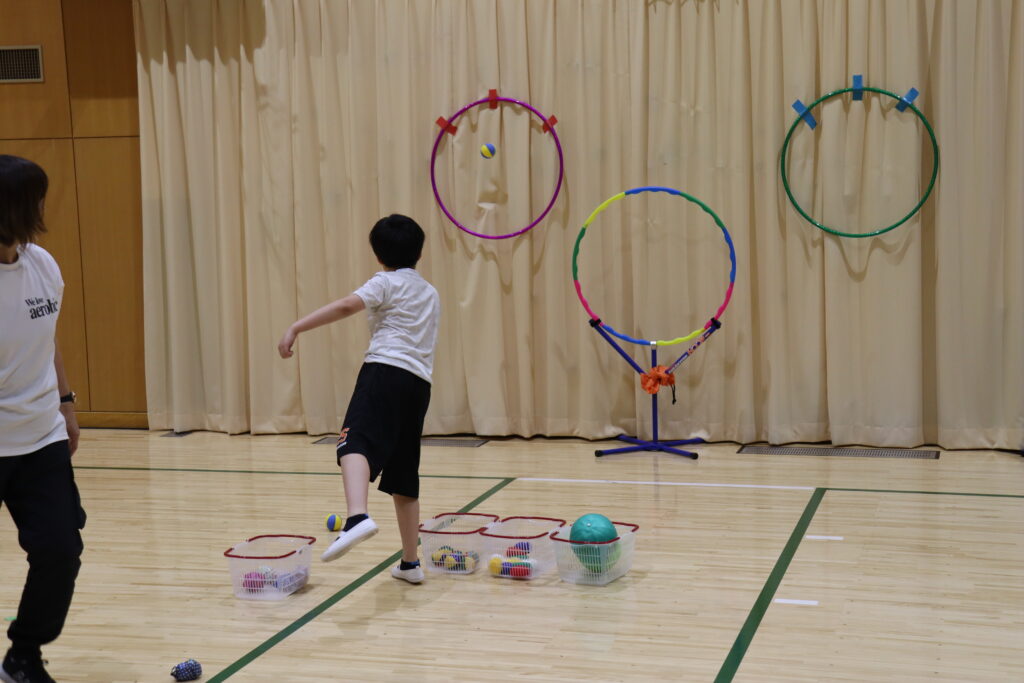プログラムの前半の時間は毎回サーキット運動を行い、とにかくいろいろな体の使い方を経験することを目的にたくさん体を動かしました。