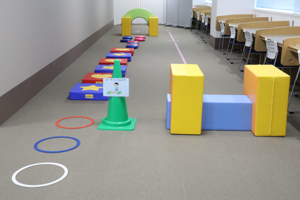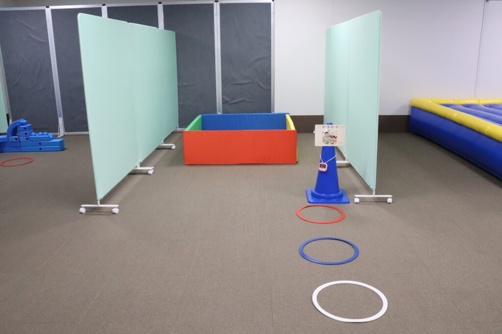 第3週目の多目的室の回では、エアトランポリンやサーキットの他、ボールプールやイマジネーションブロックなどで遊ぶことができます。広い場所だと少し落ち着かないお子さんでも、安心して参加できているようでした👍