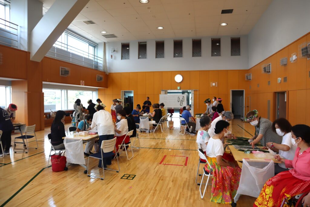 第一部では、ハワイアンレイ作りに挑戦しました。