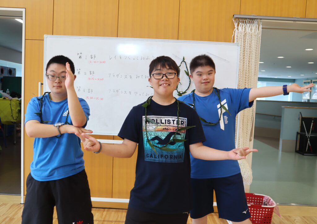 第三部は、フラダンスを実際踊ってみようということで、講師の先生の指導のもと、フラダンスに挑戦しました。