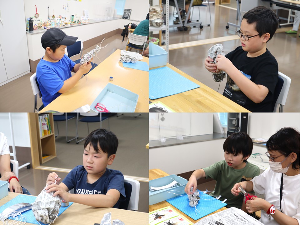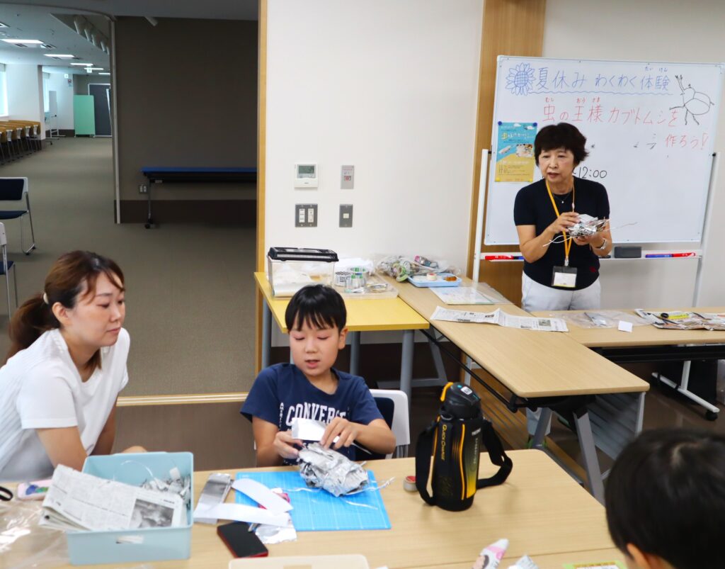 夏休みに、年長から中学生まで幅広く参加出来るわくわく体験プログラムの第一弾『虫の王様カブトムシを作ろう!』が開催されました。