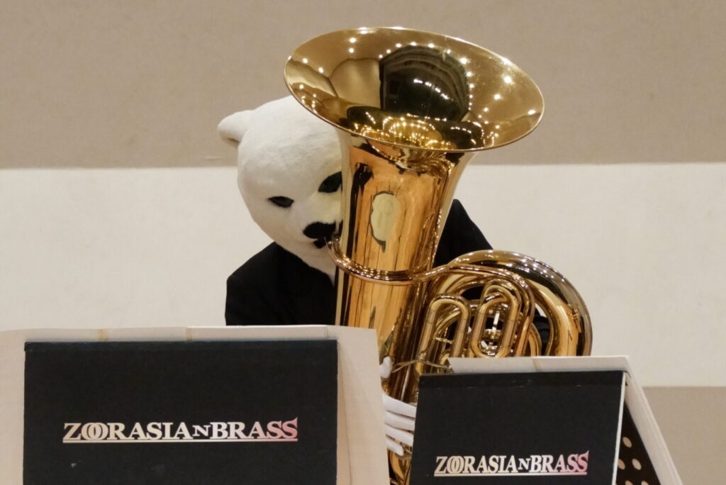 一番大きなテューバを抱えたホッキョクグマさんは、重厚な音色を奏でて会場中を惹きつけます。