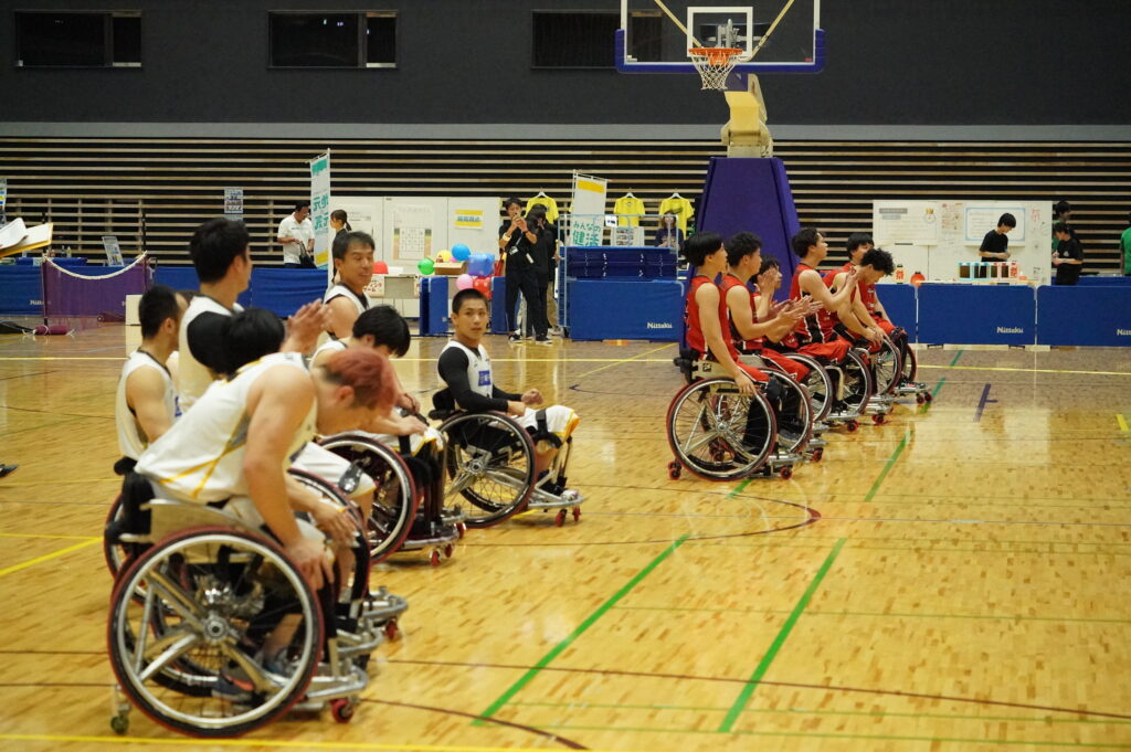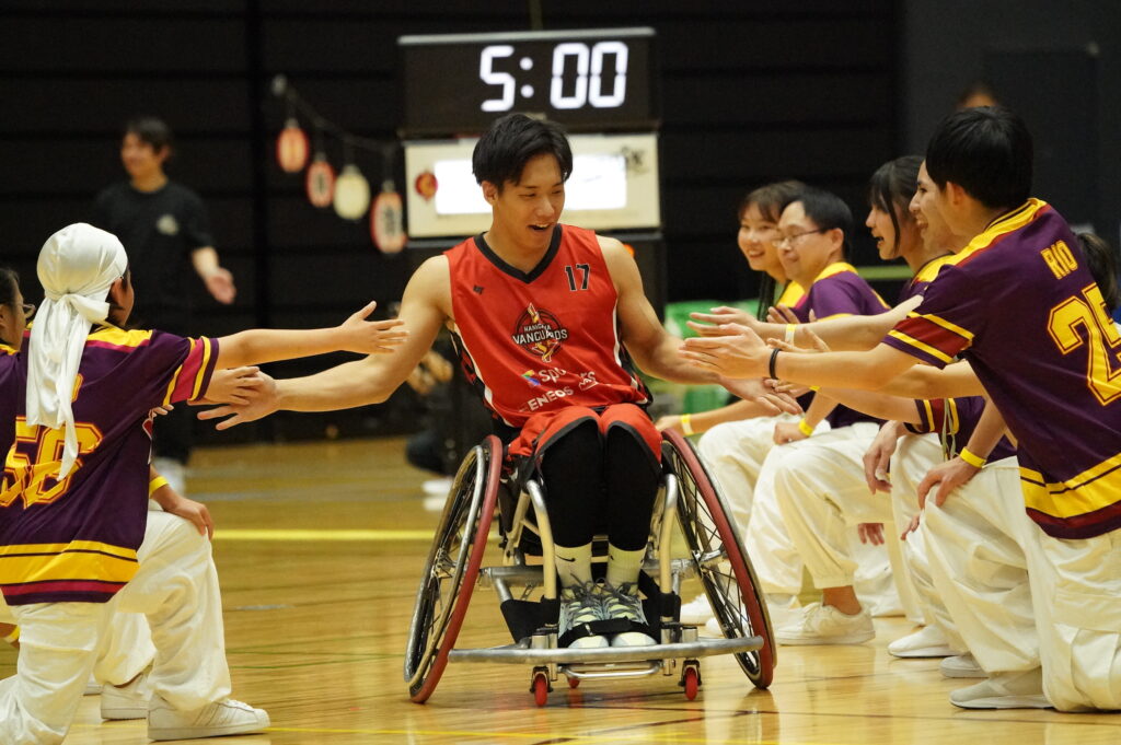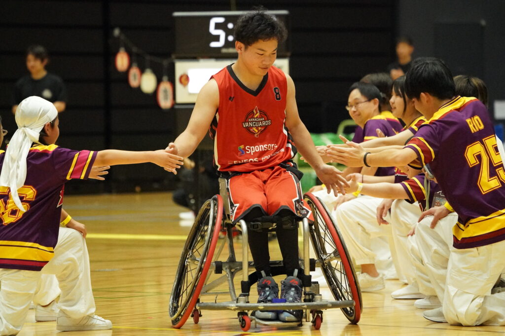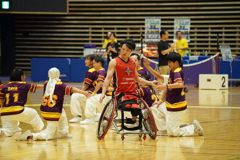 ダンス後の「FUNSTAR」が花道を作り、車いすバスケットボールの選手入場です
