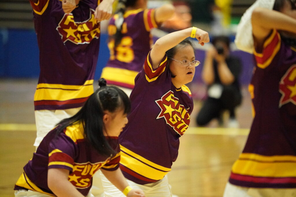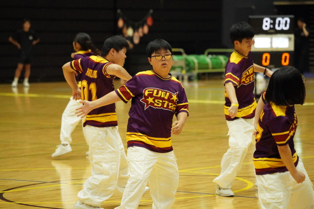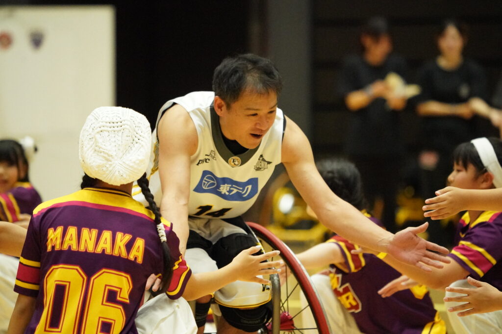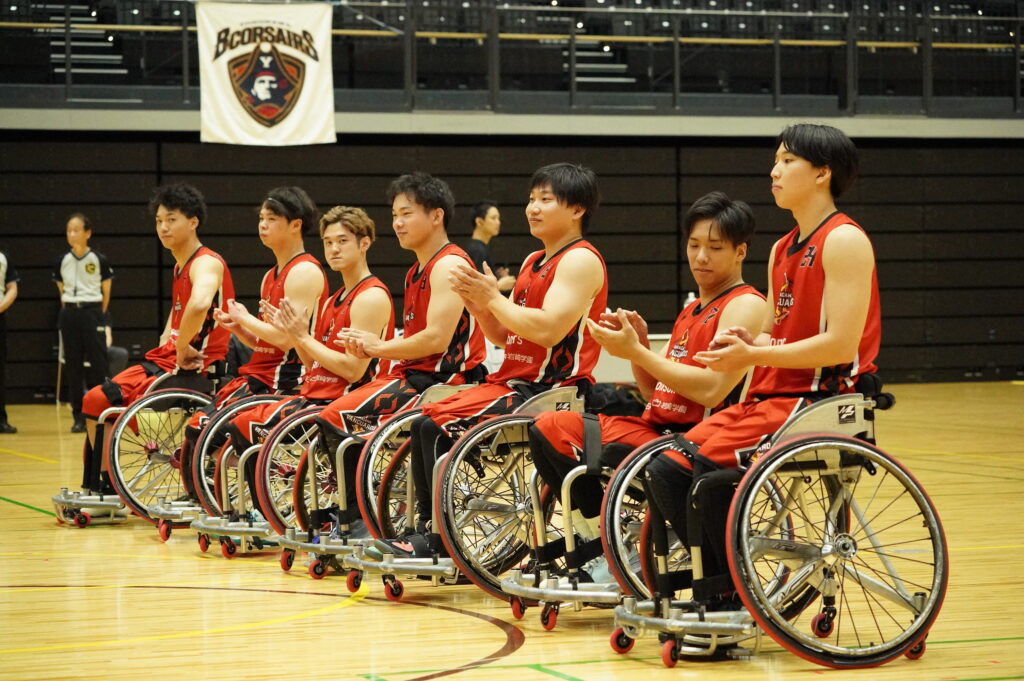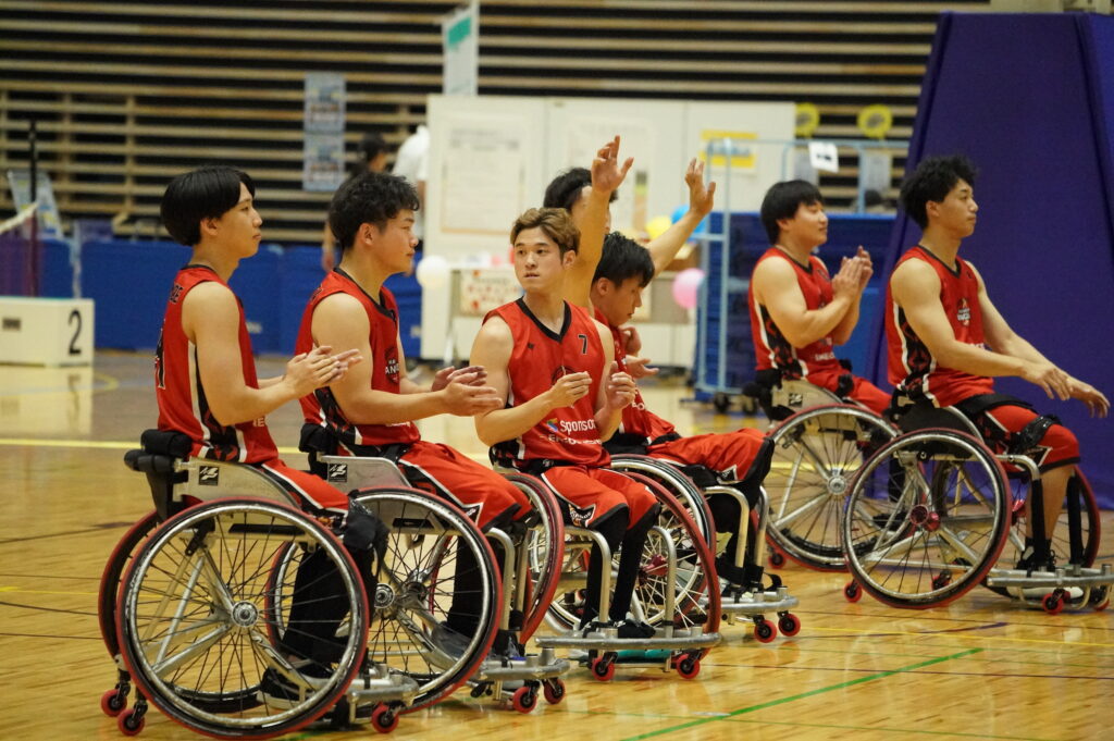 ダンス後の「FUNSTAR」が花道を作り、車いすバスケットボールの選手入場です