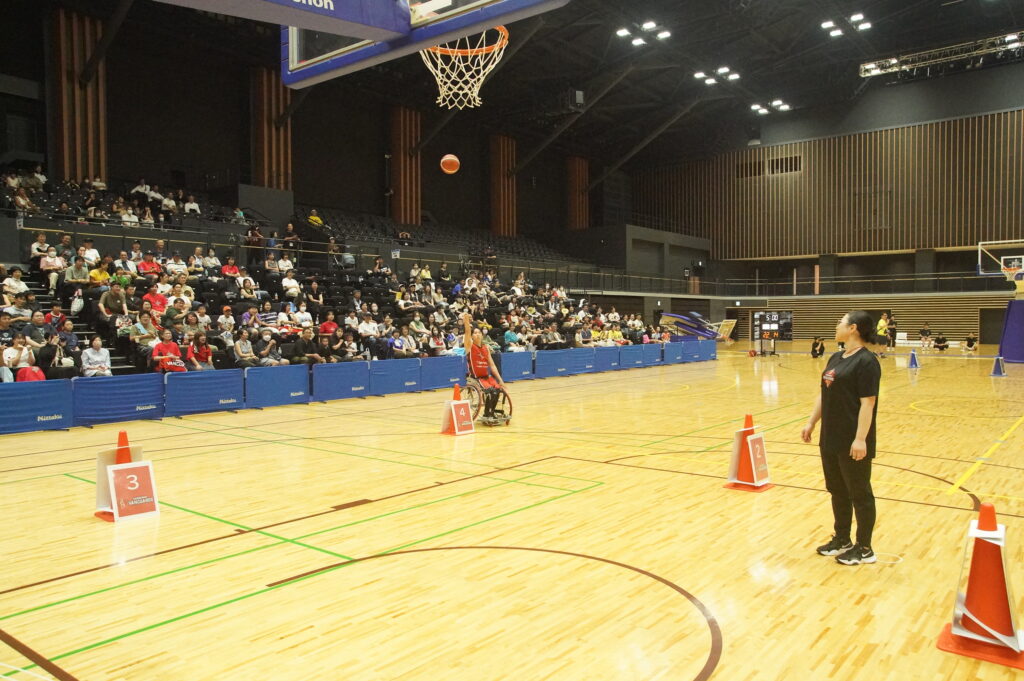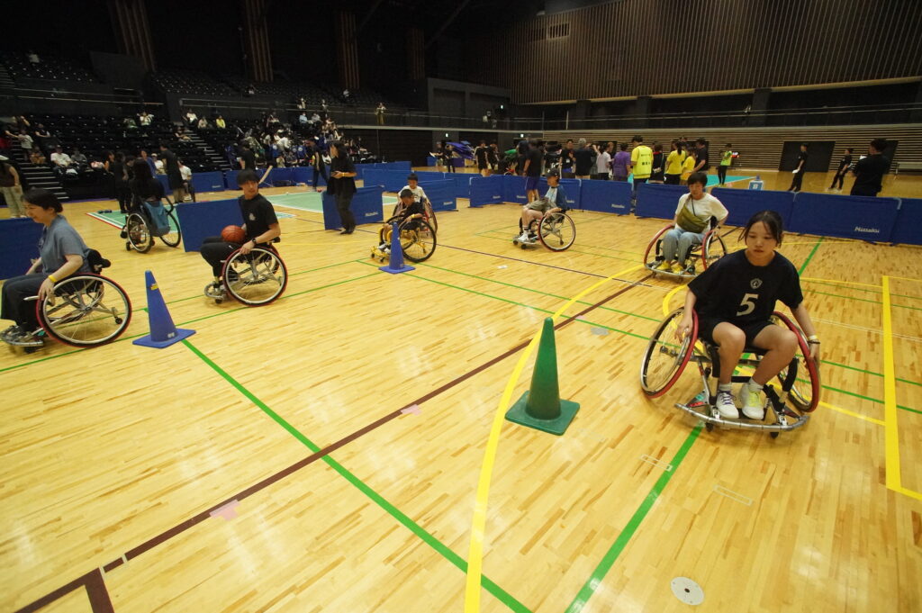 車いすバスケットボールを初めて体験する方が多く、学生さんが優しく教えていたため観客からも大変好評でした😊