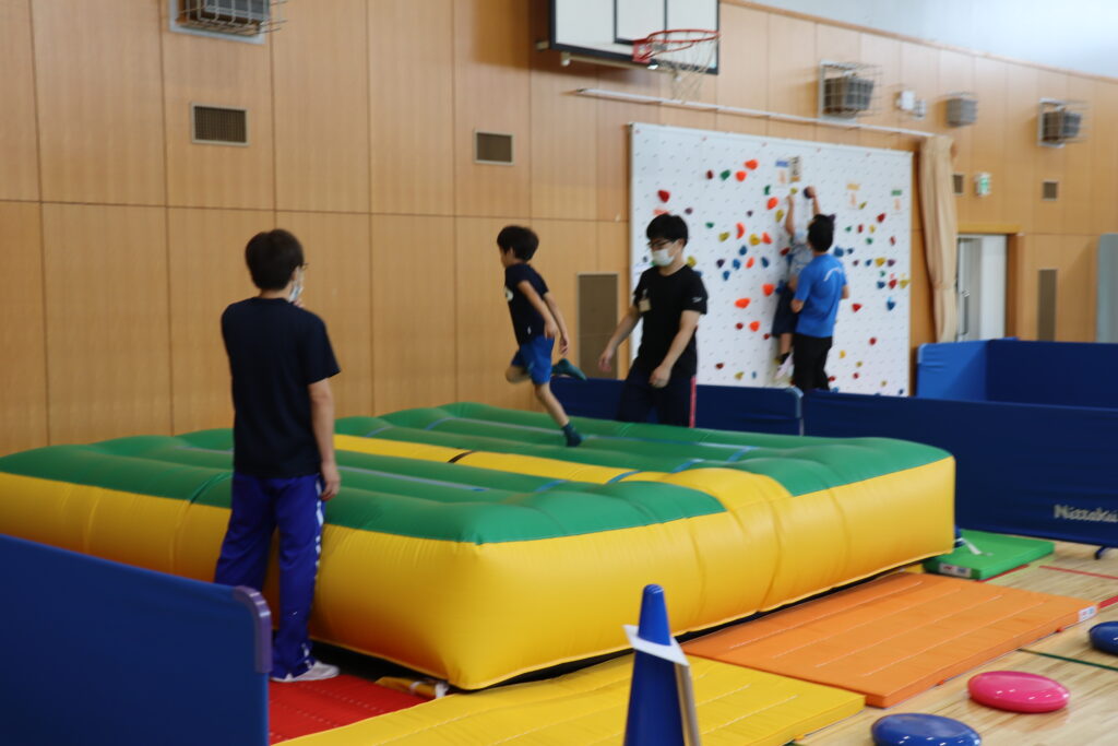 体育室で開催される回には、広いところでダイナミックに思い切り体を動かしたい親子が8組参加してくれました。トランポリンやボルダリング、サーキットでたくさんあそびました😁