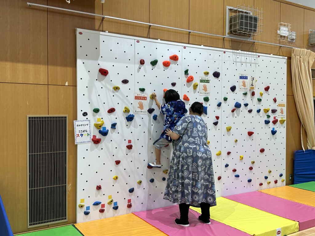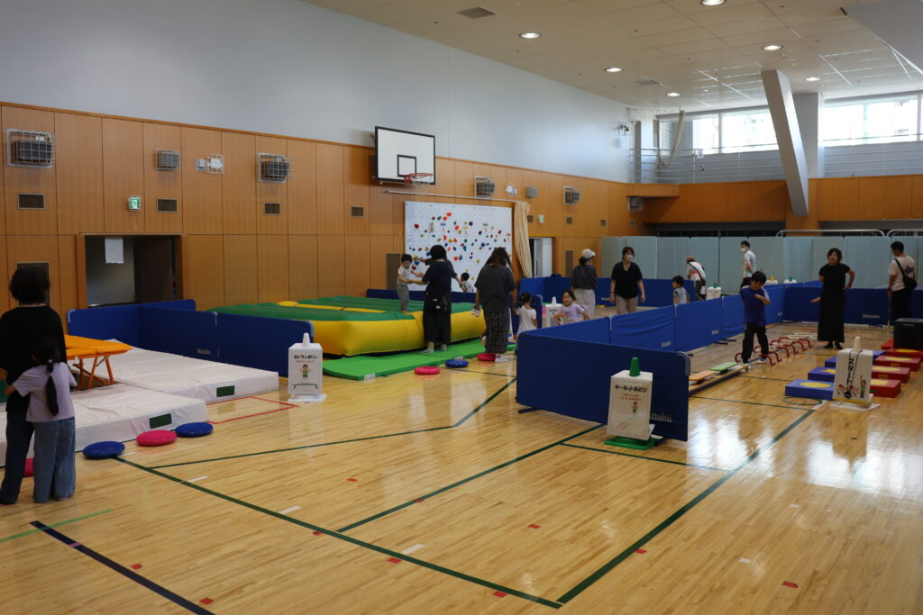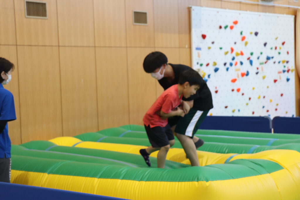 体育室で開催される回には、広いところでダイナミックに思い切り体を動かしたい親子が定員満員の10組参加してくれました。トランポリンやボルダリング、サーキットでたくさんあそびました😁
