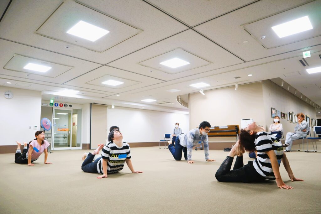 今年6月の『パントマイムであそぼう』で学んだ「引っ張り方」「引っ張られ方」を軸に、今回はさらに観客を楽しませるべく、さまざまな演技を取り入れました。
