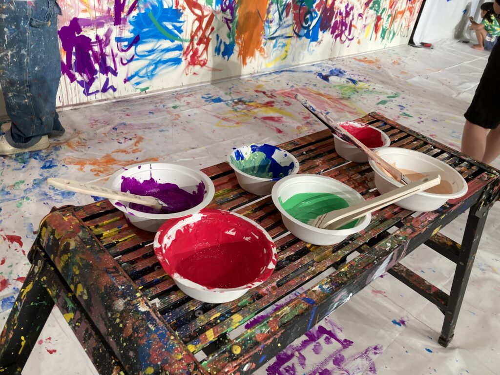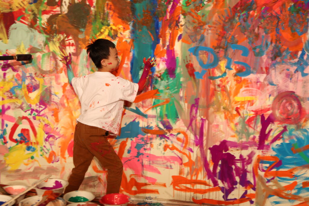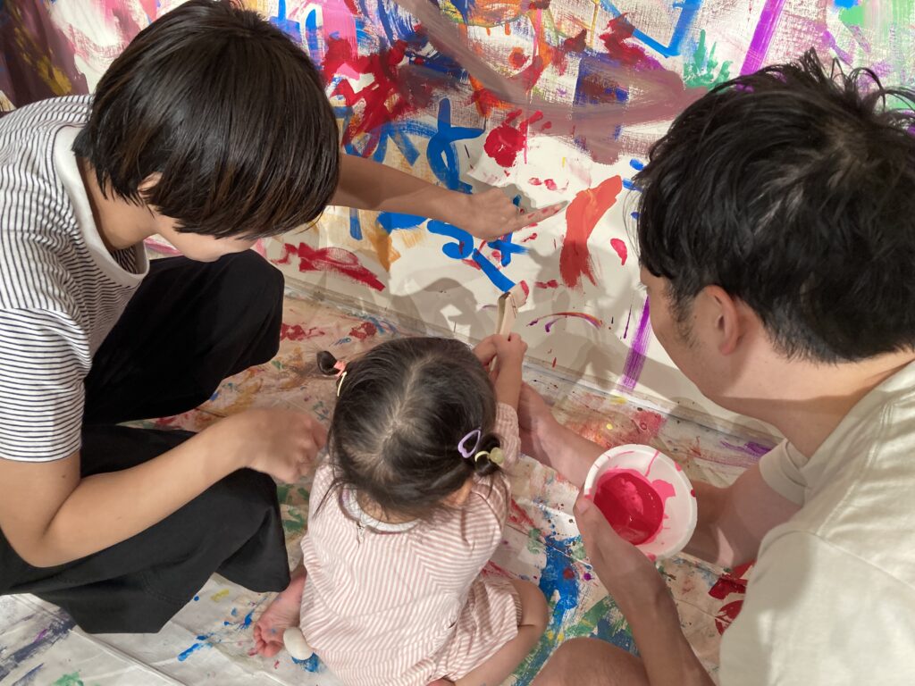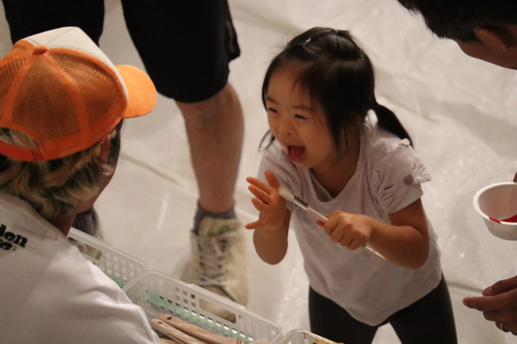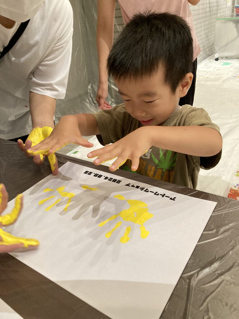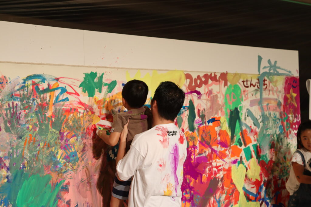 スタッフが着ている白いTシャツも子どもたちにとっては動くキャンバスです。