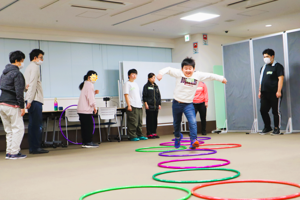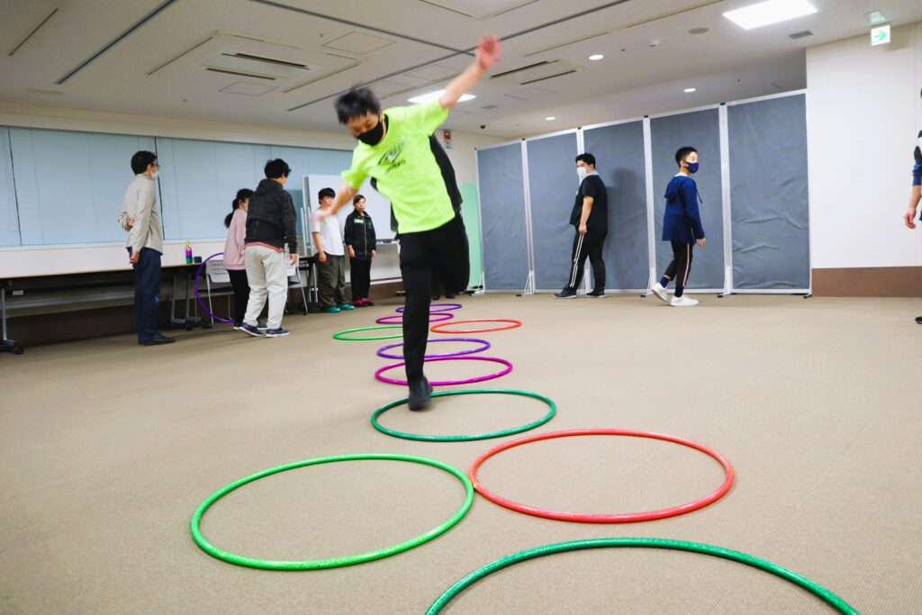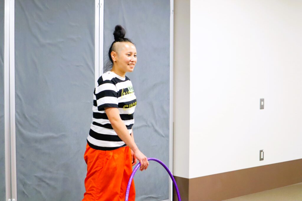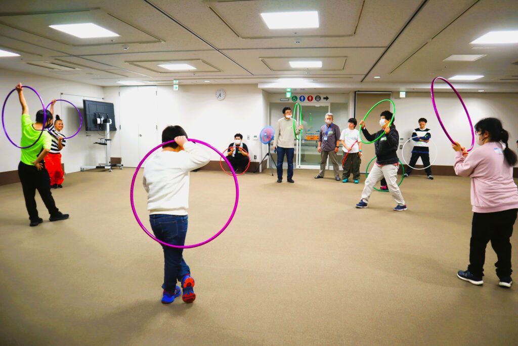 フラフープを使ってちょっとしたゲームも交えつつ、全身を動かしてダンスを楽しみました。