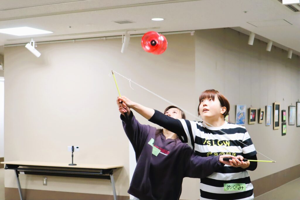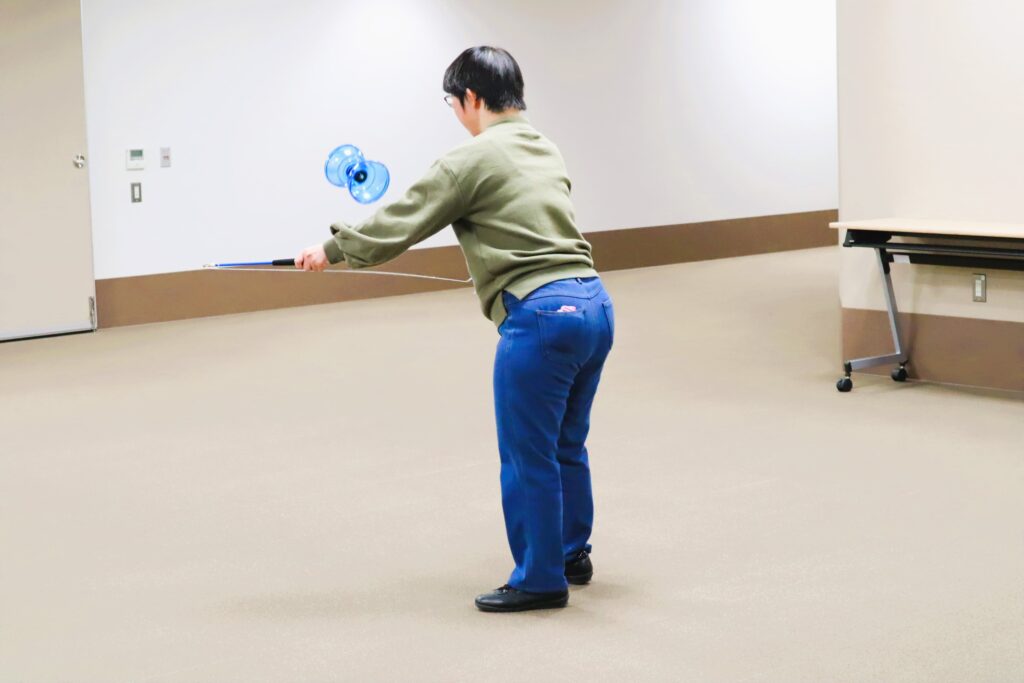 ディアボロを飛ばすことはできても、飛ばしたディアボロをキャッチするのはとても難しいようで、苦戦されている方の姿も・・・。