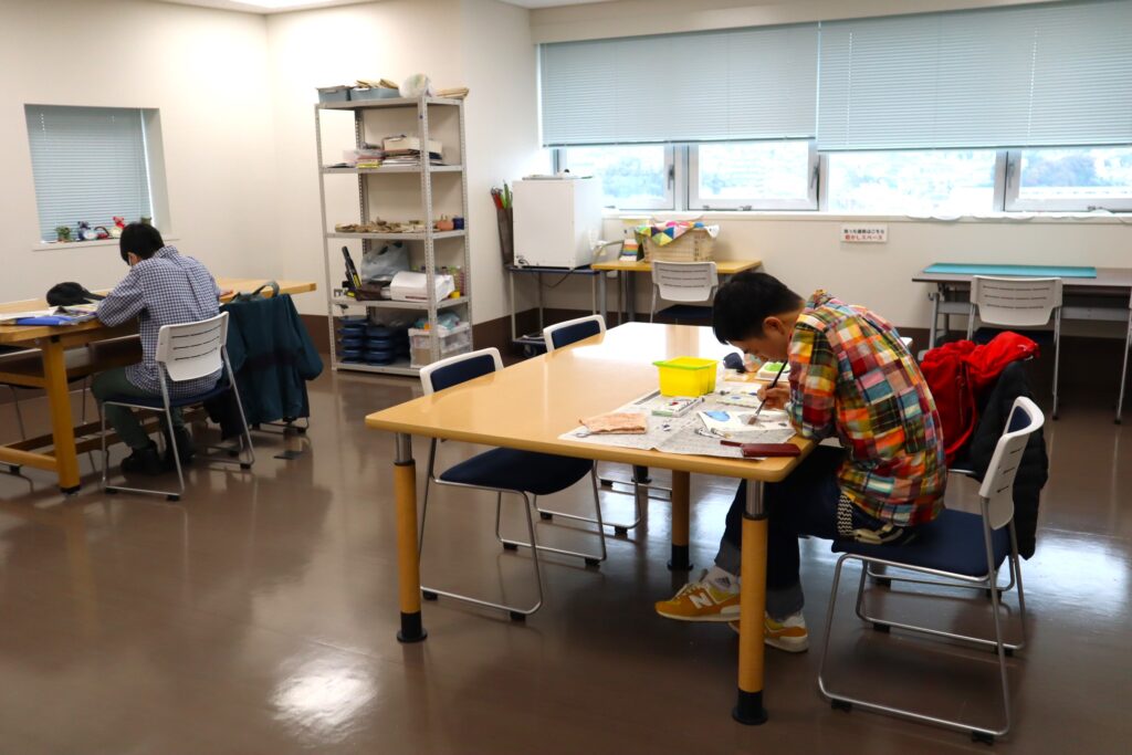 創作エリアと多目的室の両方の広いスペースのどこでも好きな場所に座って、自分のペースで2時間集中して取り組めます。