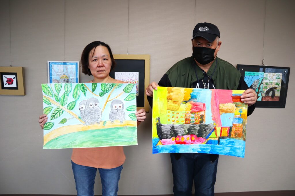 『絵画の広場』では、画材道具(画用紙、水彩絵の具、筆、パレット、筆洗器、色鉛筆、クレヨン、油性ペンなど)はレンタル出来るので、手ぶらでの参加も可能です。