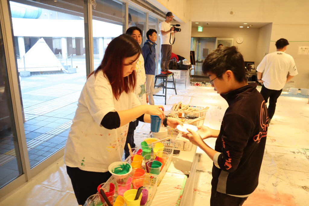 カラフルな沢山のアクリル絵の具から、自分の好きな色を選んでいきます。