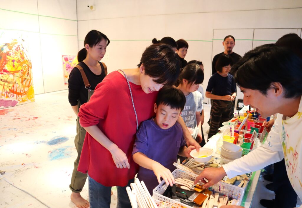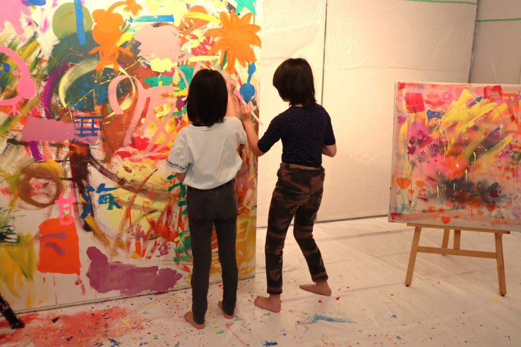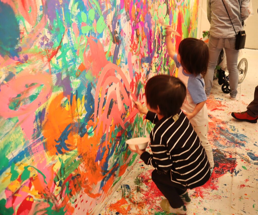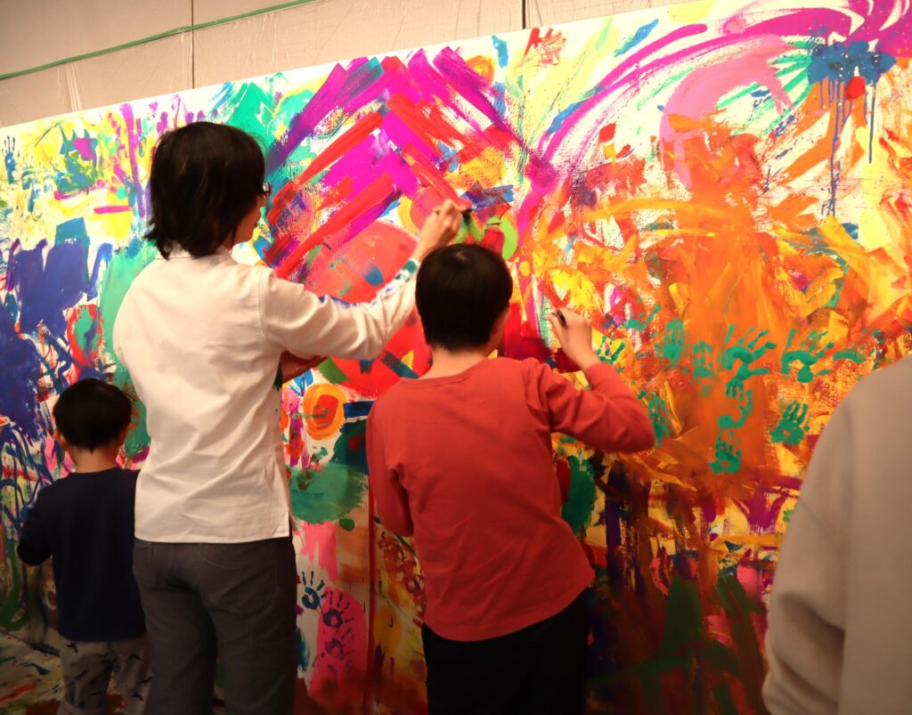 こんなに大きなキャンバスに絵を描く機会はなかなか無いので、応募が殺到し、厳正な抽選で当選した17組の親子にご参加頂きました。
