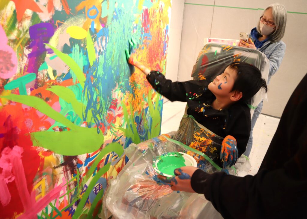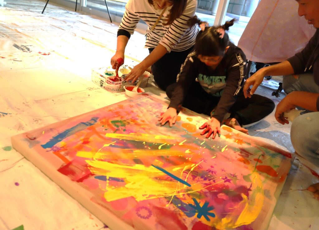 毎年恒例の「巨大キャンバスde絵の具遊び!!」が、ラポール上大岡のお隣にある港南区民文化センター「ひまわりの郷」のギャラリーで、「ひまわりの郷」と「ラポール上大岡」の共催イベントとして開催されました。