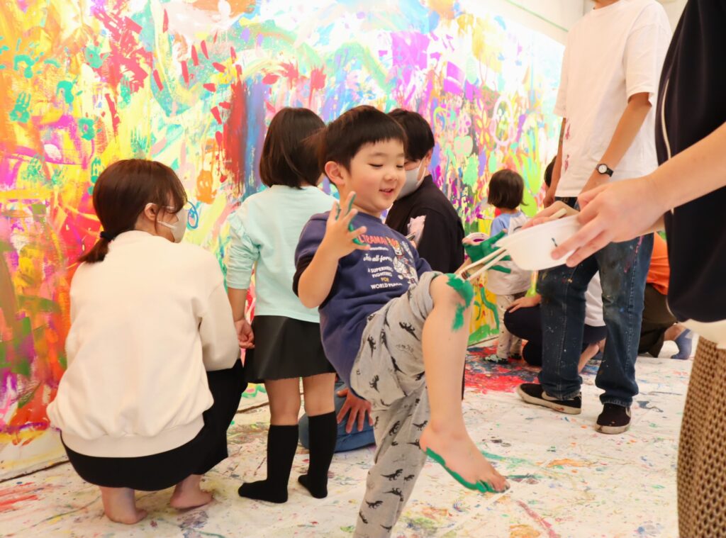 手だけでなく足にも絵の具を塗っているお子さんもいました♪