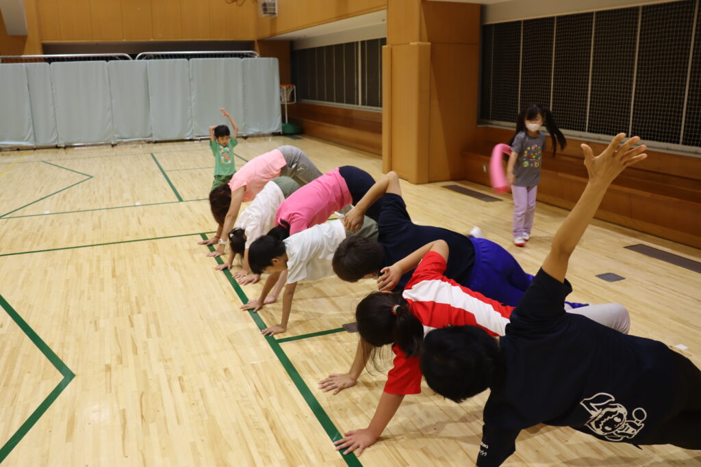 毎回のサーキット運動に加え、手や足を使った運動、全身を使った運動、跳び箱や鉄棒などの用具を使った運動、音楽に合わせたエアロビックダンスなど、各回異なったテーマで楽しく体を動かすことがこのプログラムの目的です。
