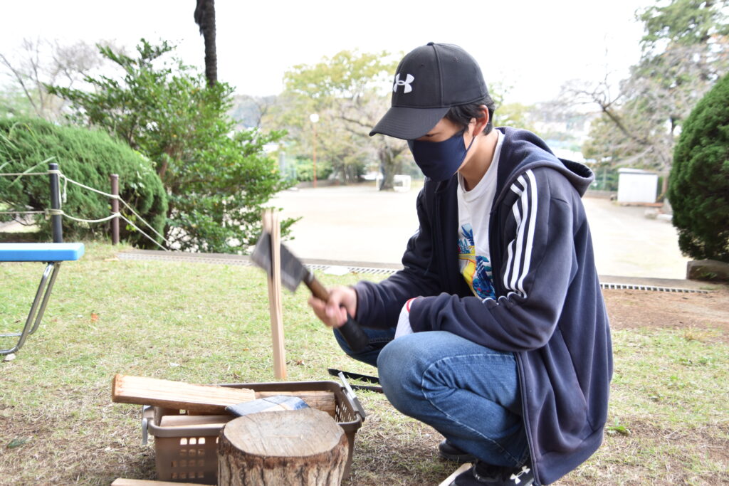 たき火dayは障害のあるお子さんを対象にたき火を囲んで家族でのんびりと過ごす企画で、薪割り・火おこし体験をはじめ、普段生活していても経験することが少ない体験ができる機会となっています。