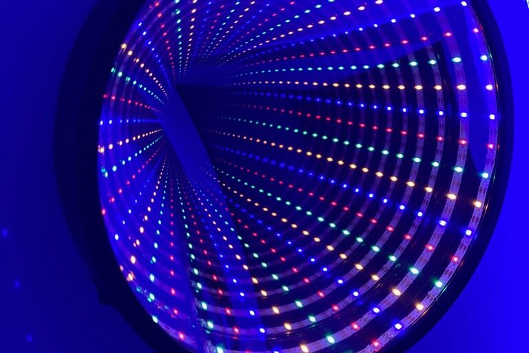 また、オブジェや家具の新作も。前回人気だった色を変えながら泡が立ち上るバブルチューブや、きらきら青く光るナイアガラの滝の電飾の他、色を変えながら光るスツール、光ファイバーが広がる不思議なランプ、円盤の中を覗くと光のトンネルに吸い込まれそうになる鏡…。