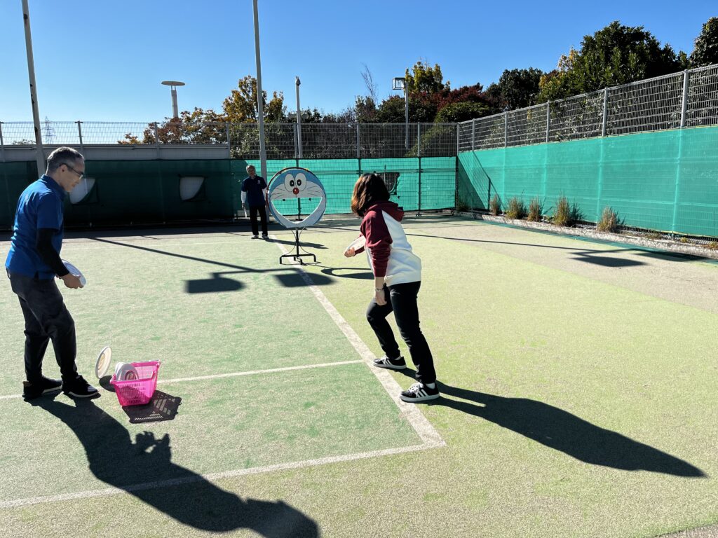 体験会ではテニスコートとグラウンド内に的あての体験コンテンツを数種類用意し、それを自由に体験していくスタイルで実施。