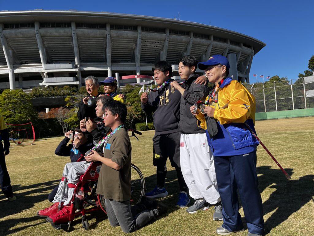 10月末に佐賀県で行われた全国障害者スポーツ大会に出場した選手たちもイベントには参加してくれて、ディスタンスのデモンストレーションや大会で獲得したメダルを見せてくれました。