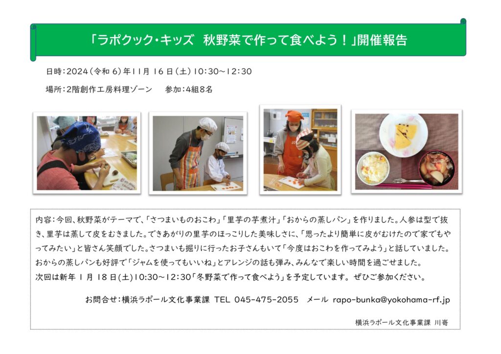 「ラポクック・キッズ 秋野菜で作って食べよう!」開催報告