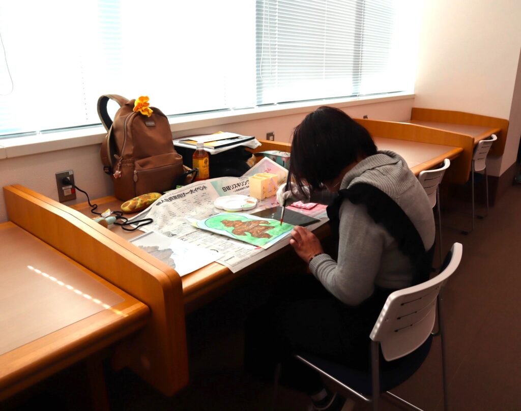 創作エリアと多目的室の両方の広いスペースのどこでも好きな場所に座って、自分のペースで2時間集中して取り組めます。