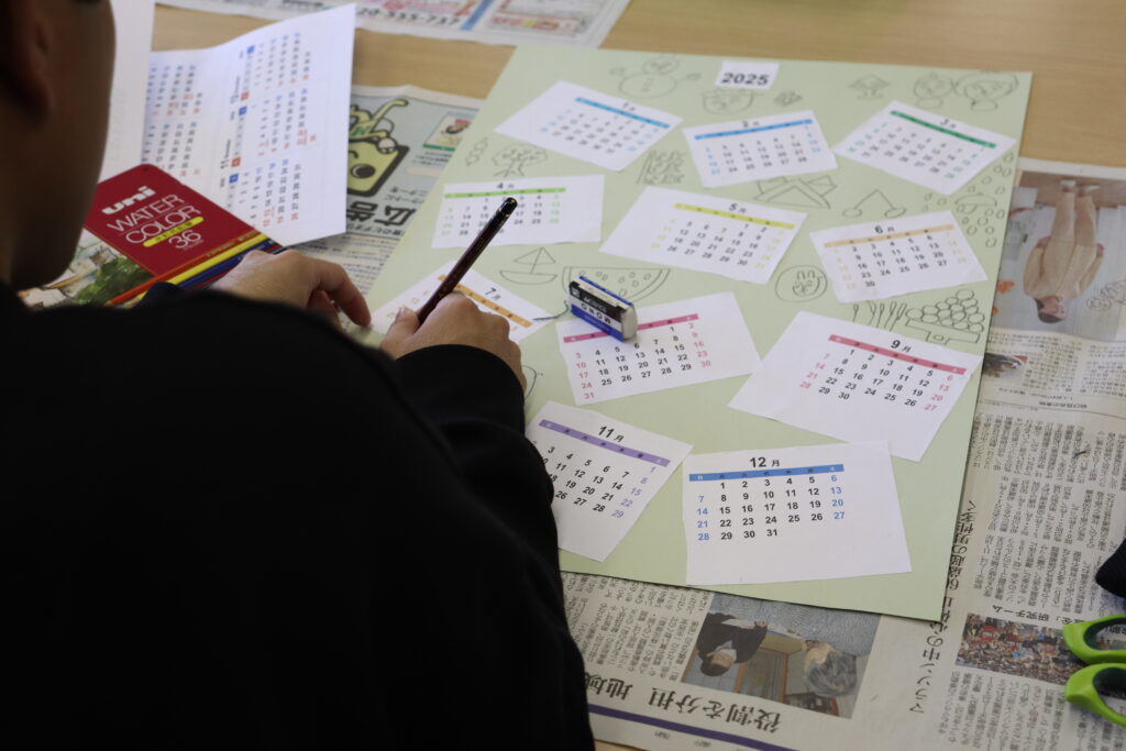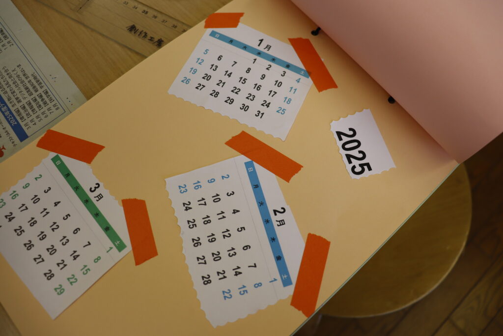 12か月分のカレンダーを作るので、結構時間もかかります。みなさん、時間ギリギリまで集中して取り組まれていました。