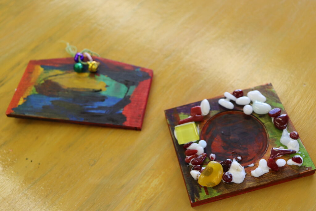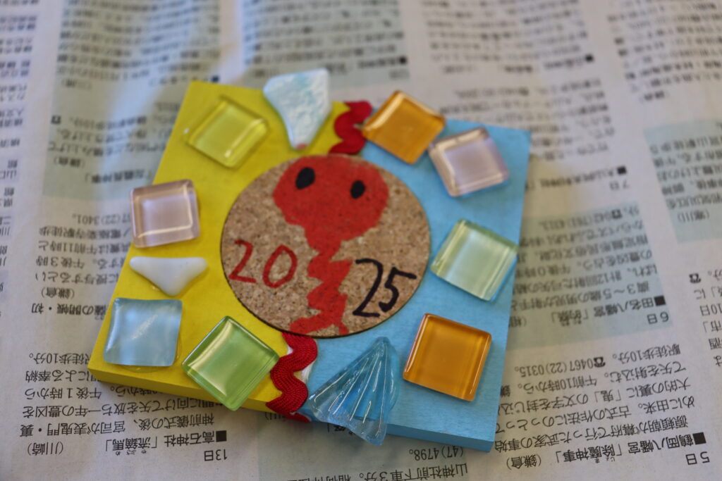 絵馬づくりが終わったら、コースターづくり。タイルを貼り付けたり、自分だけのコースターづくりを楽しまれていました。