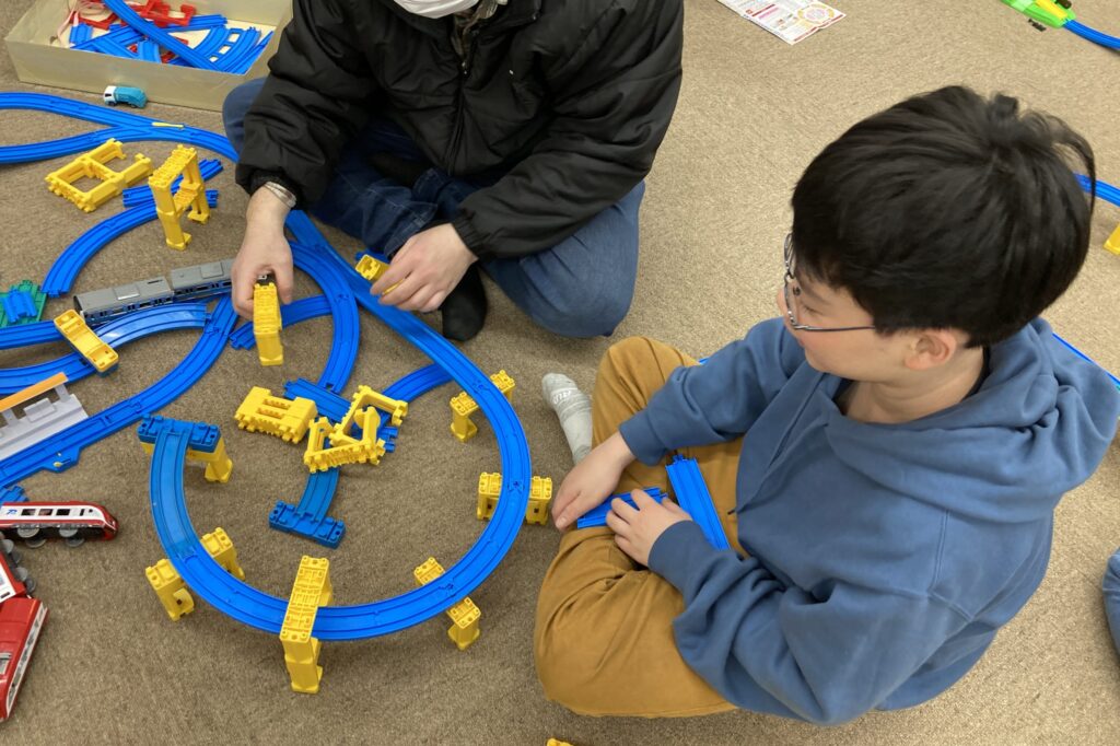 令和7年1月25日(土)に午前午後の二部制で、すっかりおもちゃ図書館イベントとしておなじみになった「プラレールやミニカーで遊ぼう!」を開催しました。