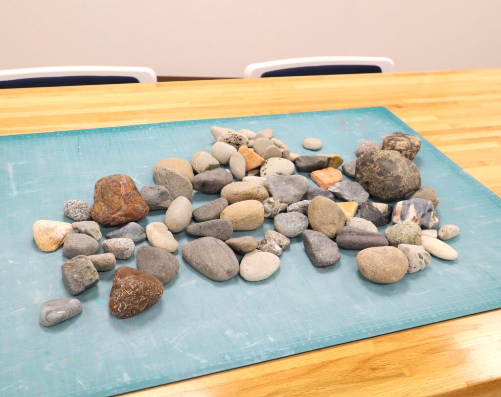 講師の先生が色んな大きさの様々な色の石を用意してくれました。