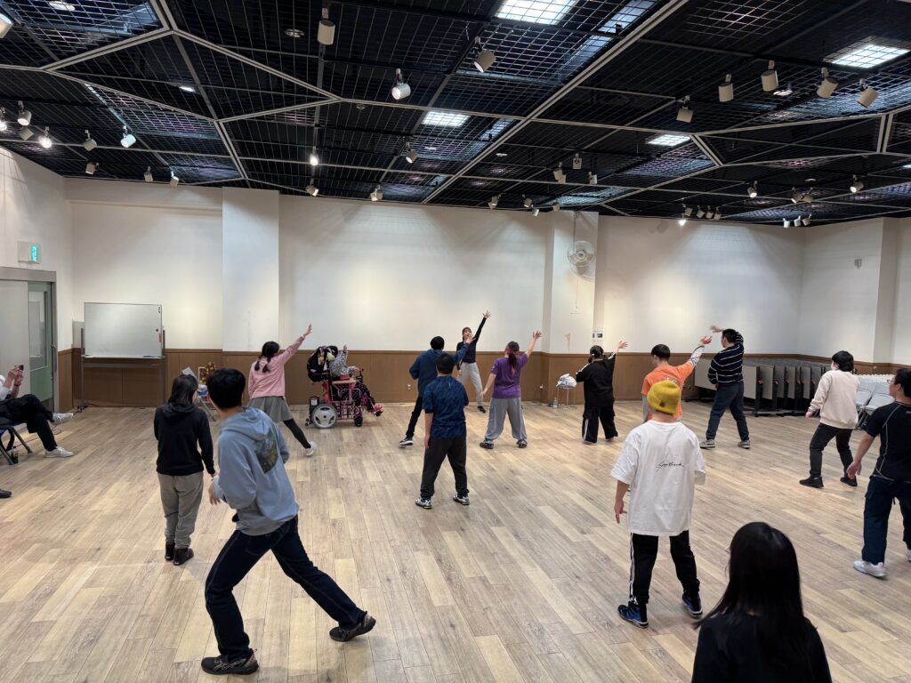最初は緊張していた参加者も電動車いすで参加された方も、先生と他の参加者と一緒に踊るにつれて、自然と笑顔が出てくるようになりました。