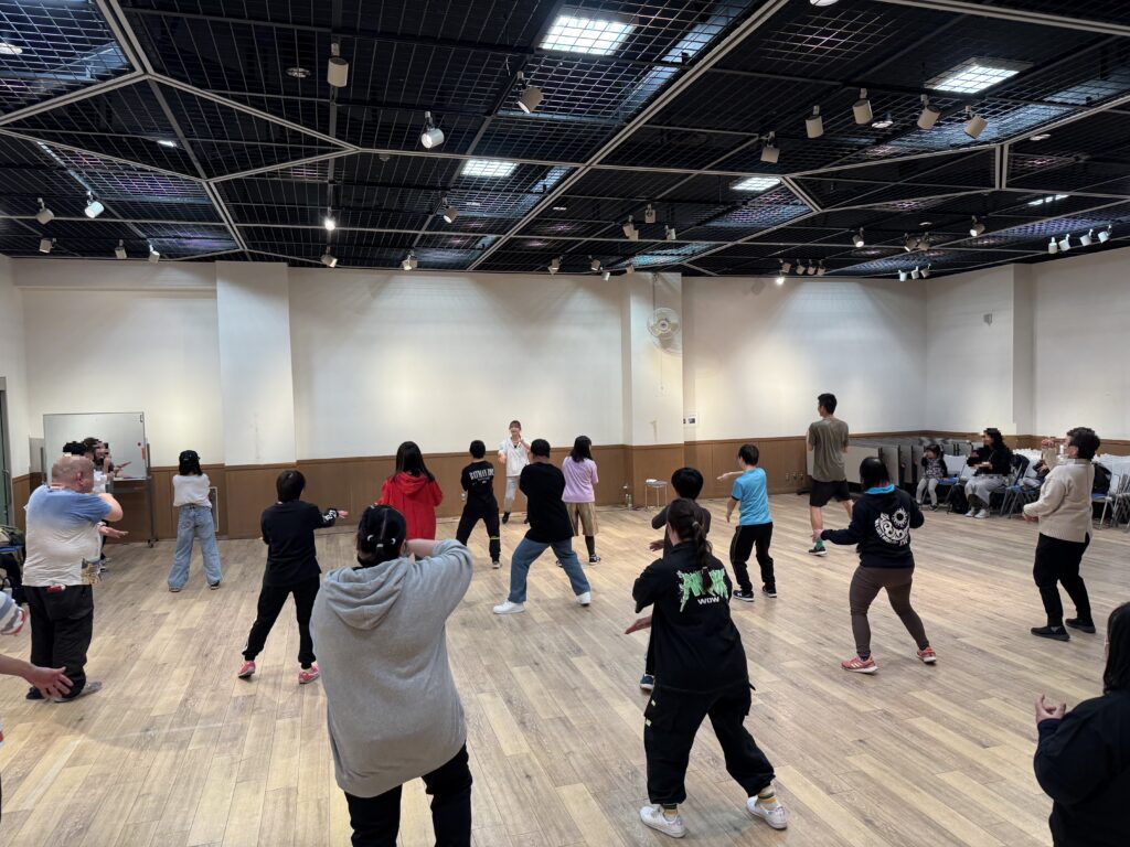 参加者が一度は聞いたことがある、踊ったことがある曲でのワークショップは振付も入りやすく、参加者は2曲の振付を覚えて発表しました。