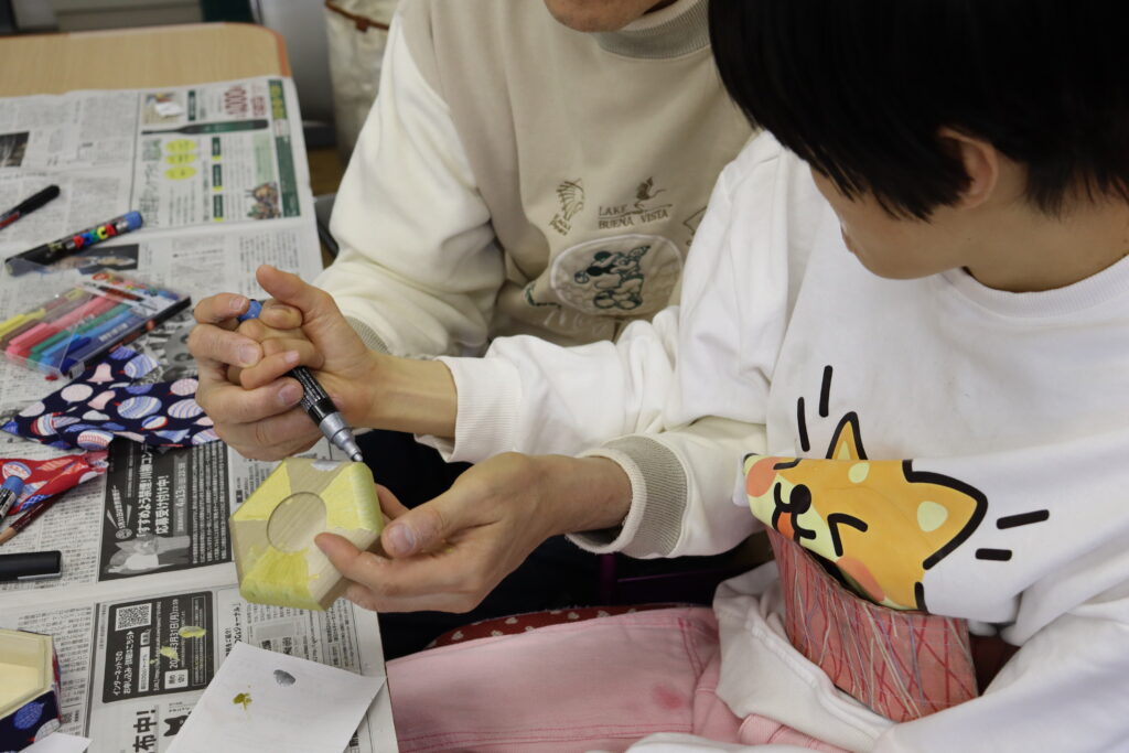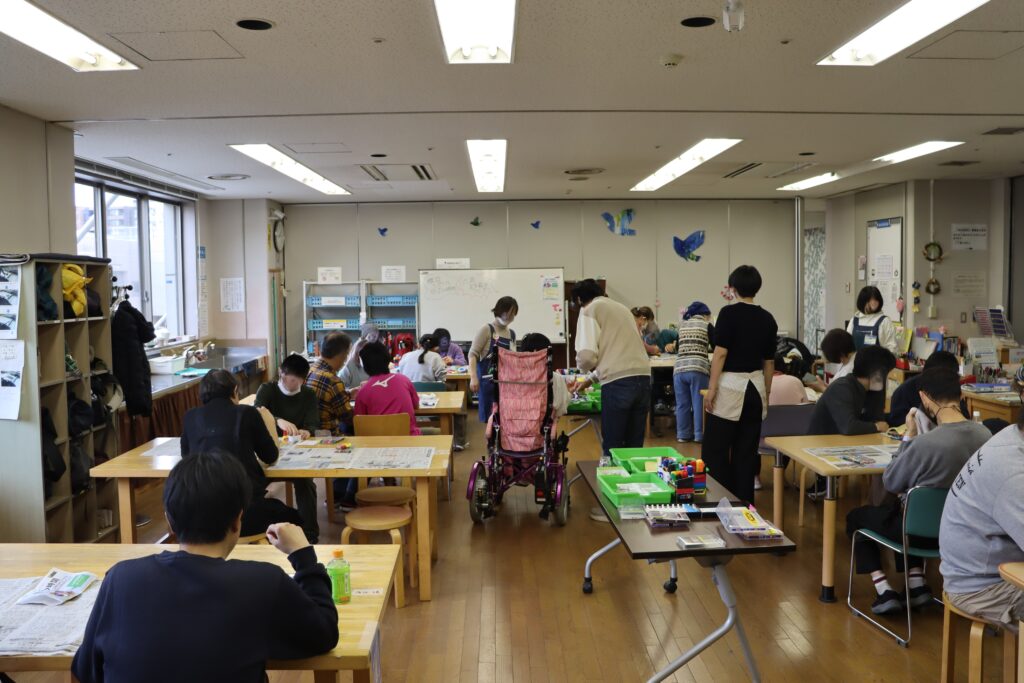 図工の時間は、主に障害のある小学生以上の方を対象とした、工作系のプログラムです。つくるものはその時々で変わりますが、3月は「六角形の玉手箱」をつくりました。12組22名のご参加があり、とても賑わっていました!