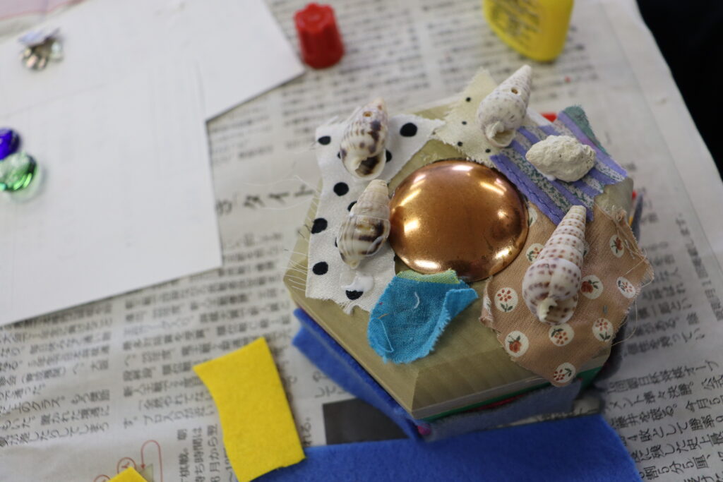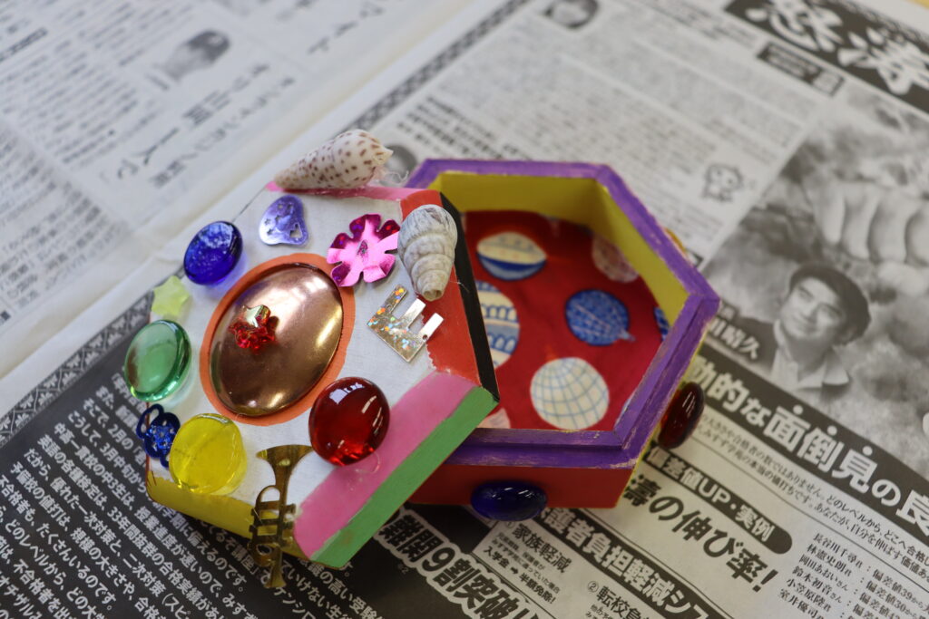 創作の自由度も高く、玉手箱に色を塗るもよし、布を貼るもよし。いろいろな飾りでデコレーションするもよし。それぞれの個性が光ります。