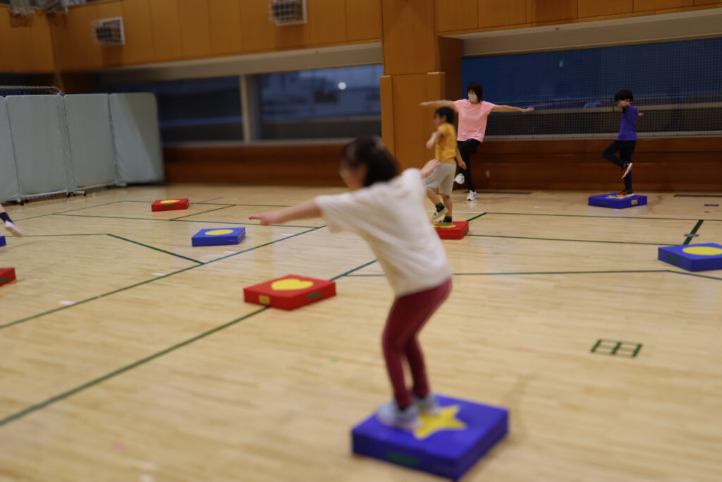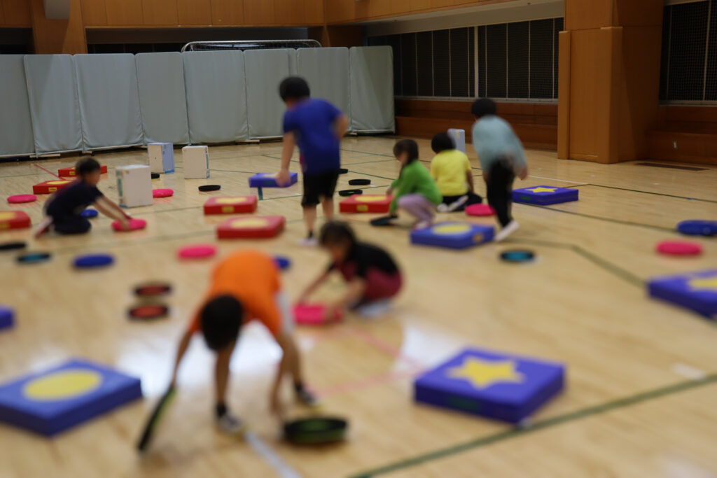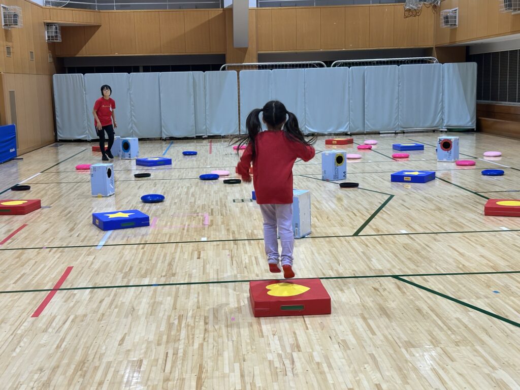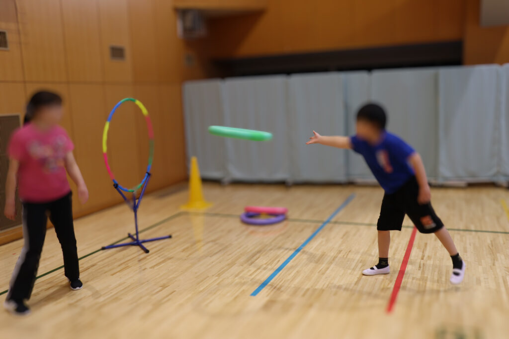 フライングディスクを使った的当て、JPクッションの上で鬼ごっこ、ミニコーンを使ったシャッフルゲームなど、ワクワクするプログラムが盛りだくさん!😆 もちろん、鉄棒や跳び箱など学校体育でおなじみの運動にもチャレンジしました!