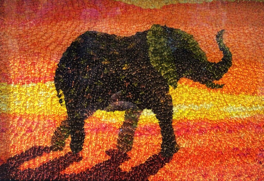 5mm四方の折り紙で作った鶴で構成された作品。