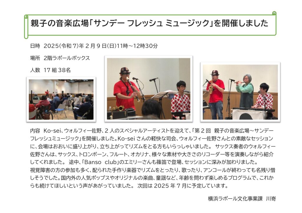 親子の音楽広場「第2回サンデーフレッシュミュージック」を開催しました