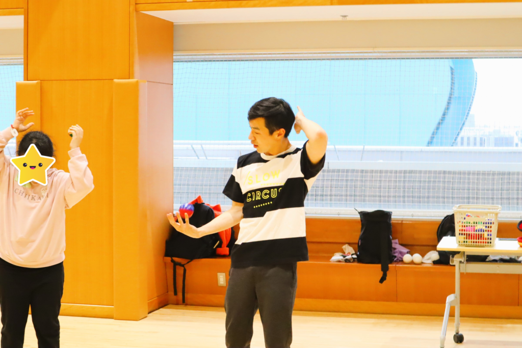 第1回は講師かいしゅーさんによる「1個のボールでジャグリング」でした。