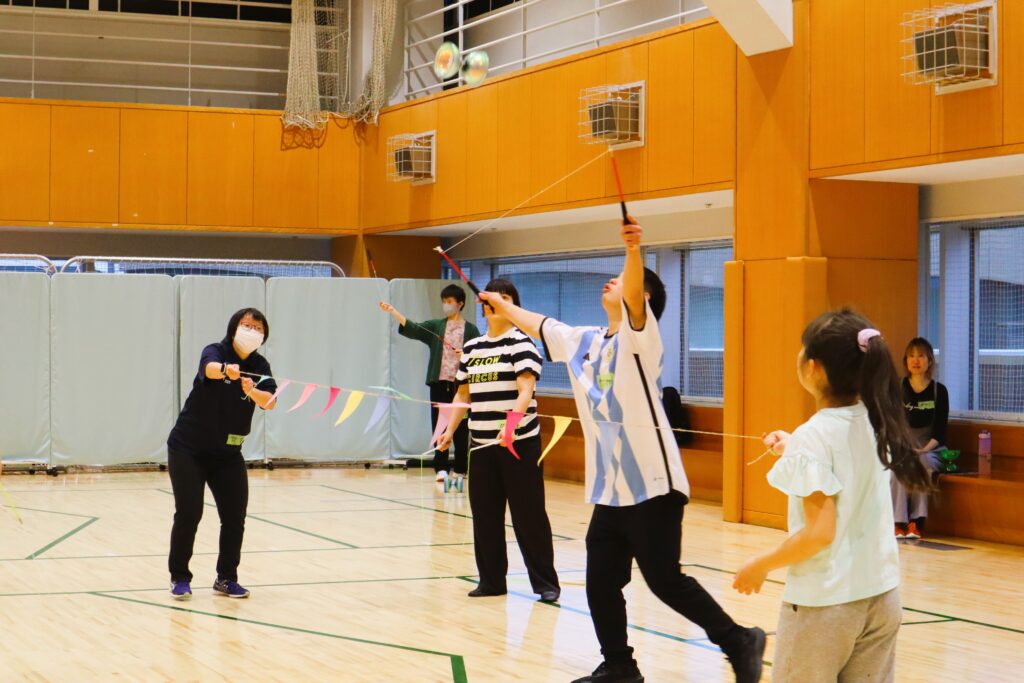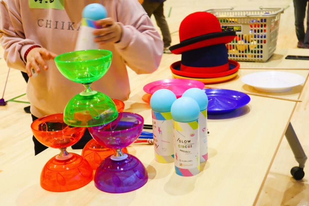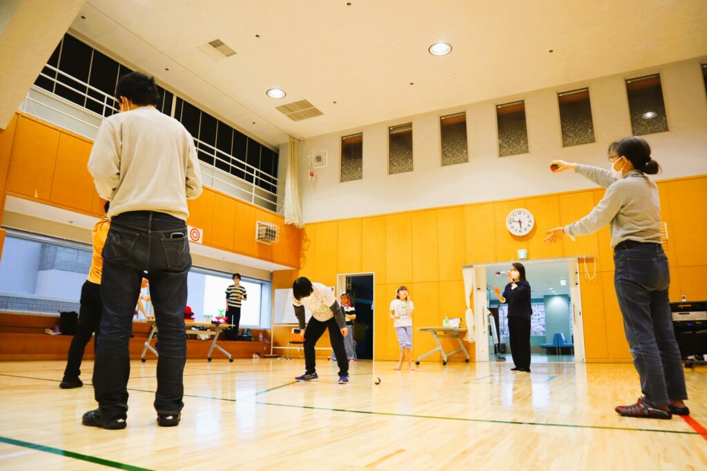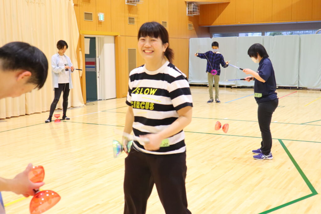 天井が高くなり、以前よりも思い切りよく練習できるようになりました。ディアボロは参加者のみなさんにも大人気の道具です。色鮮やかなコマを回しながら、様々な技に挑戦しました!