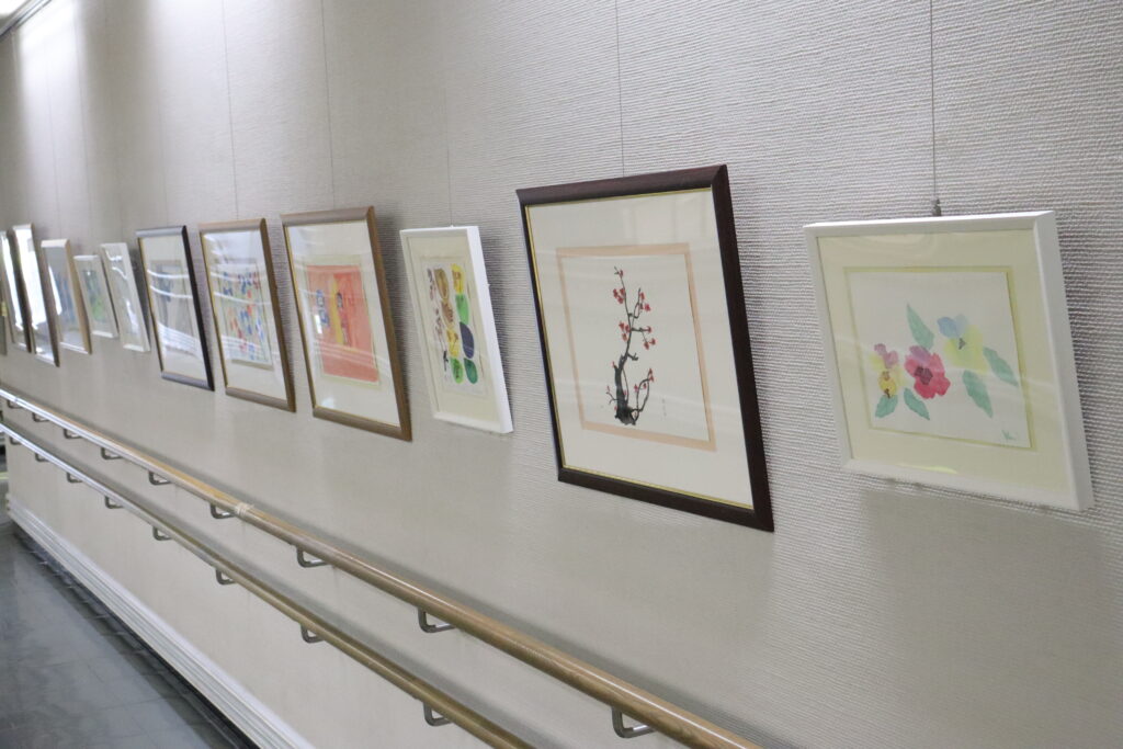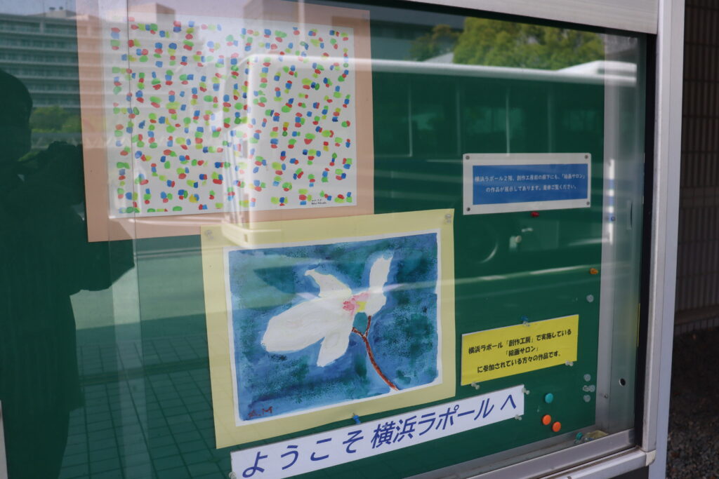 描き終わった絵は、ラポール2階廊下と送迎バス乗り場の掲示板で展示しています。(2階の展示場所は、創作工房へ行く途中の廊下にありますので、是非ご覧ください)