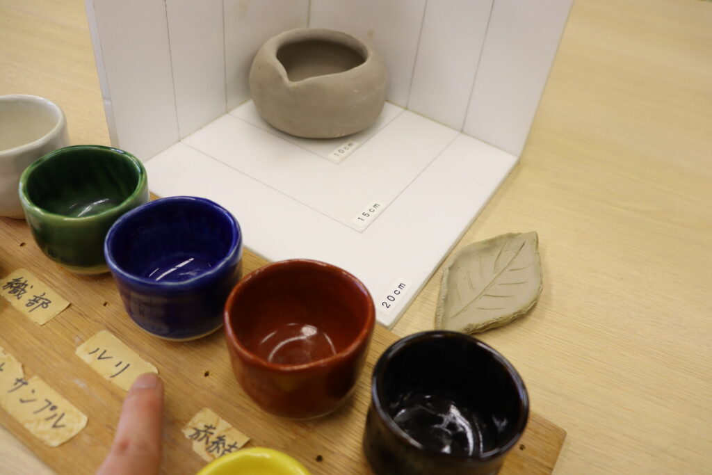 いろいろな色がありますので、選ぶのも迷いますね。色をつける作業や窯で焼く作業は後日講師が行います。作品の仕上がりは6月下旬予定。作品が完成したら、創作工房にとりに来ていただきます。