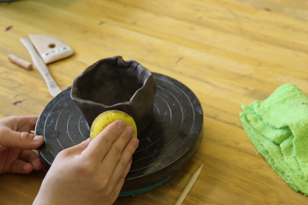 手ろくろを使って、自分の手でコップの形づくりにチャレンジ。既製品にはない、てづくりの味わい深い作品づくりが楽しめます。