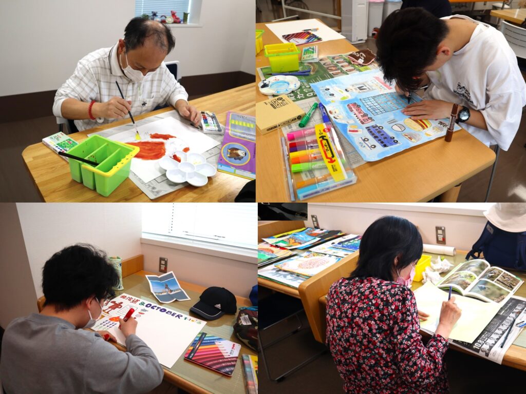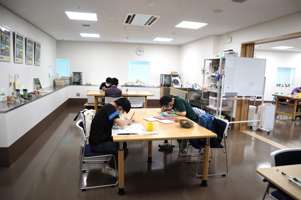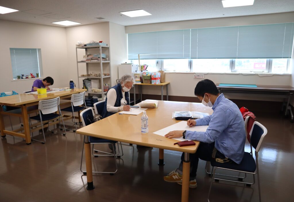創作エリアと多目的室の両方の広いスペースのどこでも好きな場所に座って、自分のペースで自分の描きたいものに2時間集中して取り組めます。