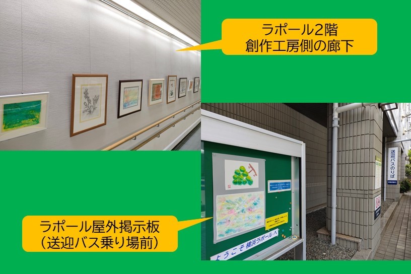 そして、完成した絵はラポール2階の廊下や、送迎バス乗り場の掲示板で展示しています。