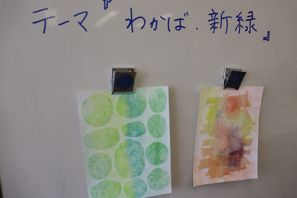 創作工房のゆったりとした空間で、絵画制作を楽しめる「絵画サロン」。5月は「わかば・新緑」というテーマで実施し、10人の方が参加されました。