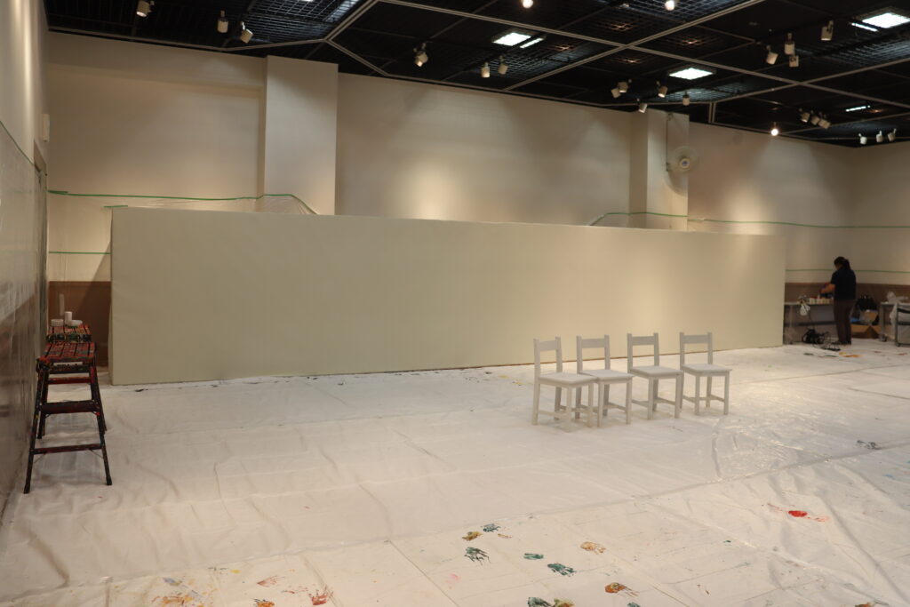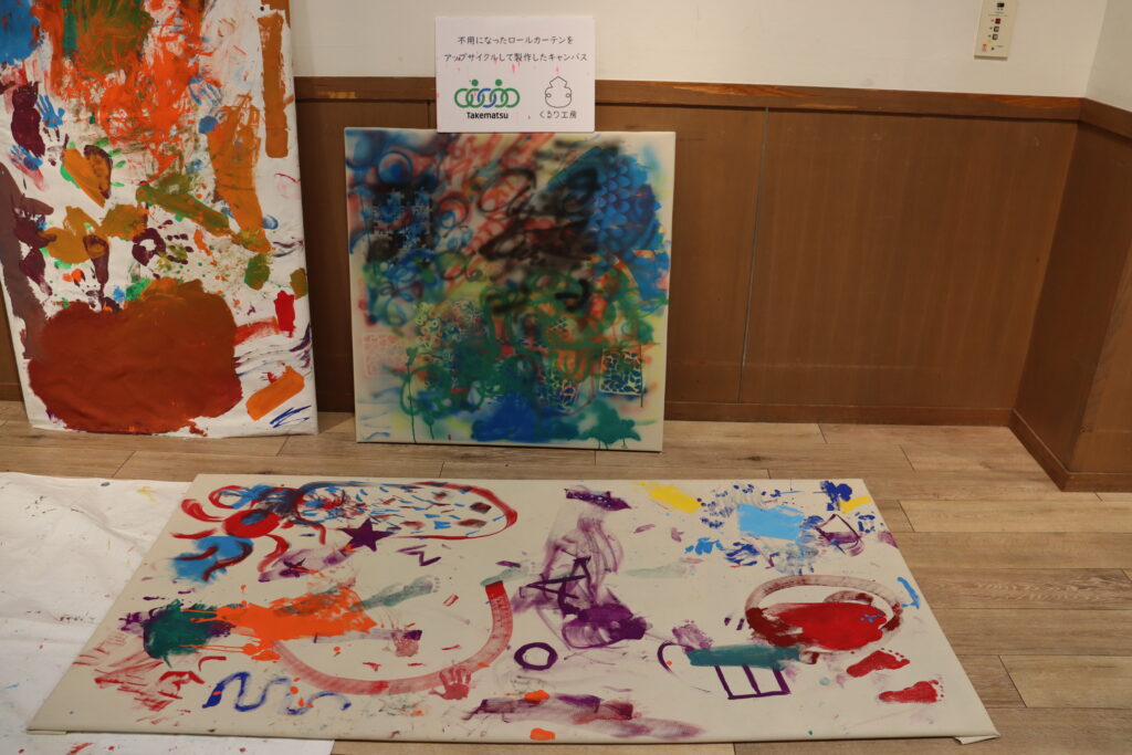 今年も、武松商事 くるり工房にご協力をいただき、こちらは不要になったロールカーテンをアップサイクルして製作した特製のキャンバスをご提供いただきました。