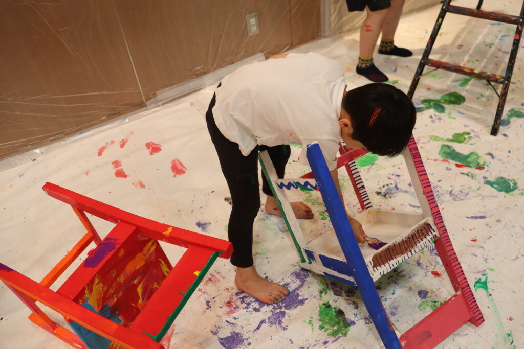 毎年、椅子を好きな色に塗るのが大人気です。完成した椅子は創作工房で使用されています。